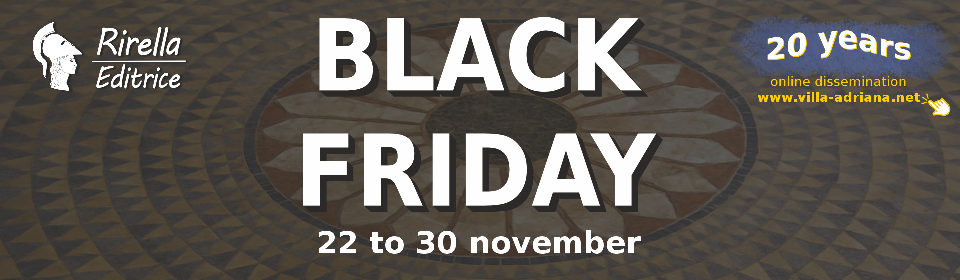 Per celebrare i 20 anni del portale dedicato a Villa Adriana, nato nel 2005 e per il Black Friday 2025, Rirella Editrice presenta un’offerta davvero irripetibile: una selezione dei suoi volumi più preziosi.